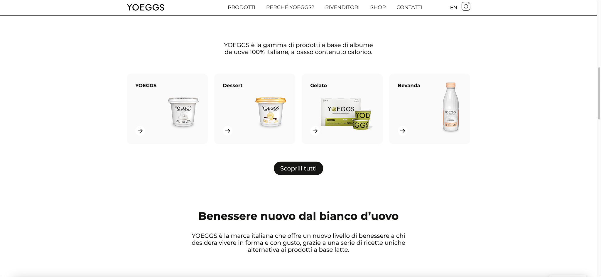 YOEGGS è una linea di prodotti proteici innovativi a base di albume d’uovo italiano. Per il brand ho contribuito al redesign del sito web, oltre che la realizzazione di tutti i contenuti video per i profili social, unendo motion graphics e content creation.